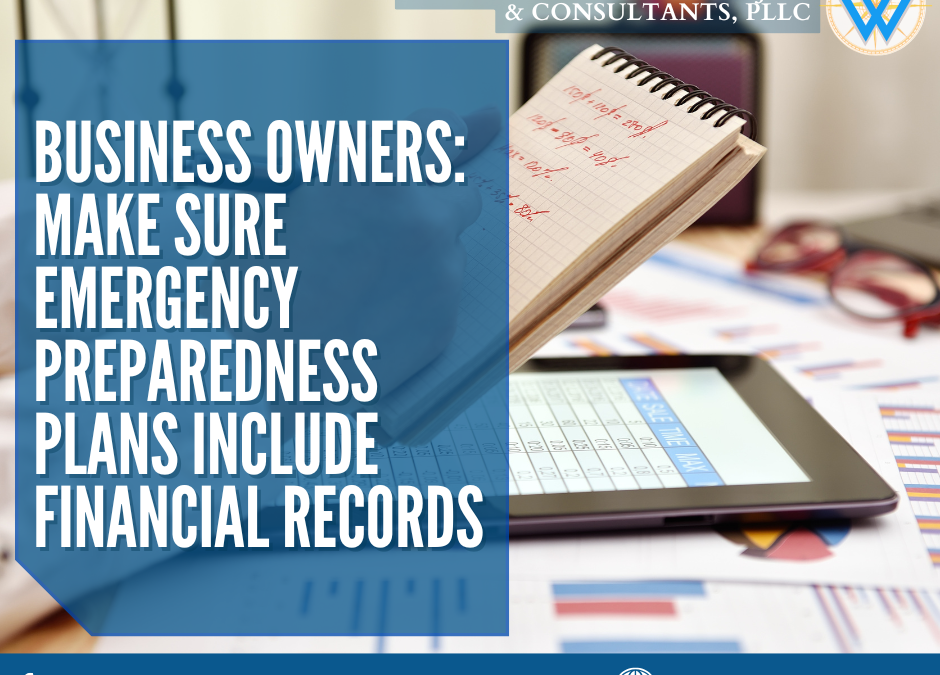 When business owners put together an emergency preparedness plan, it should include copies of vital records and financial information.