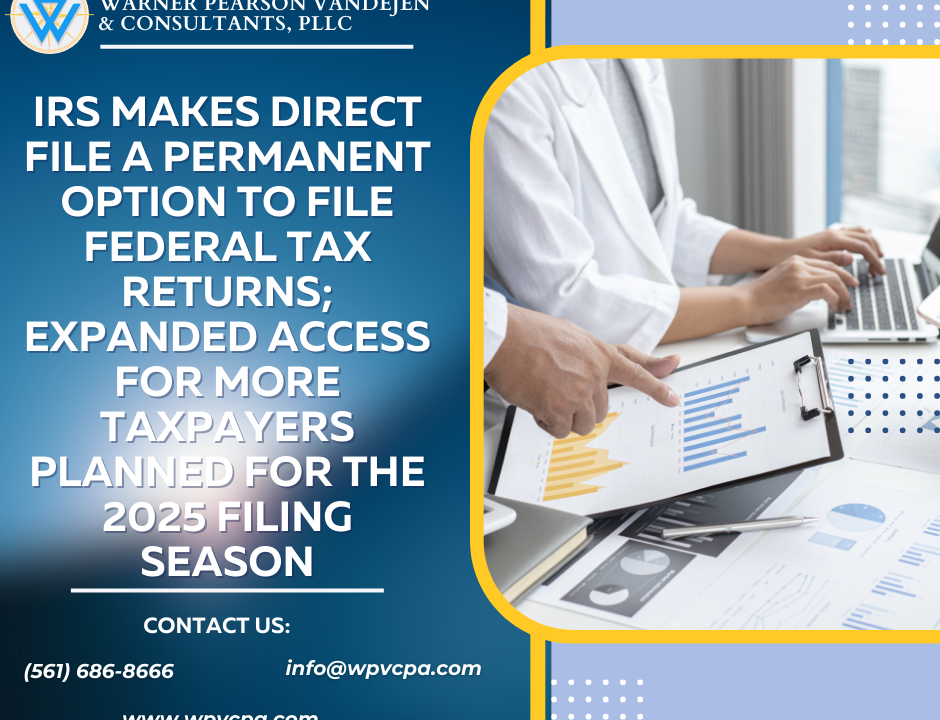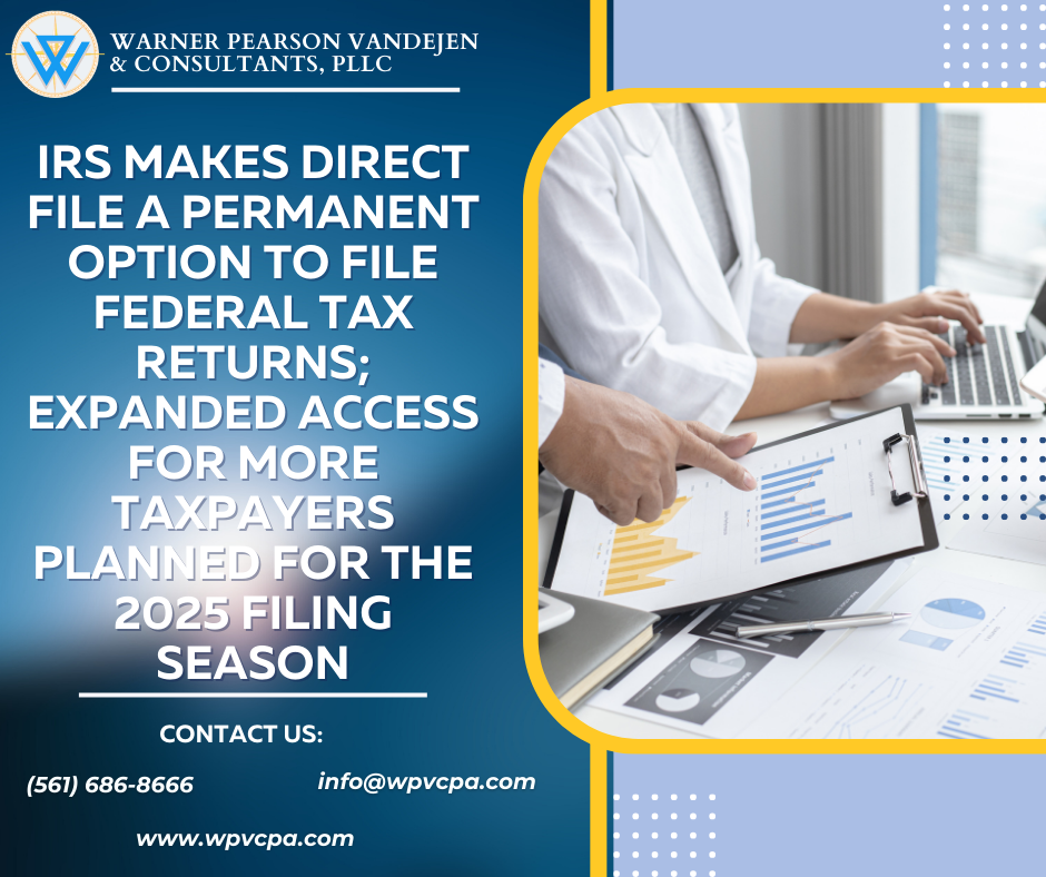 IRS makes Direct File a permanent option to file federal tax returns; expanded access for more taxpayers planned for the 2025 filing season