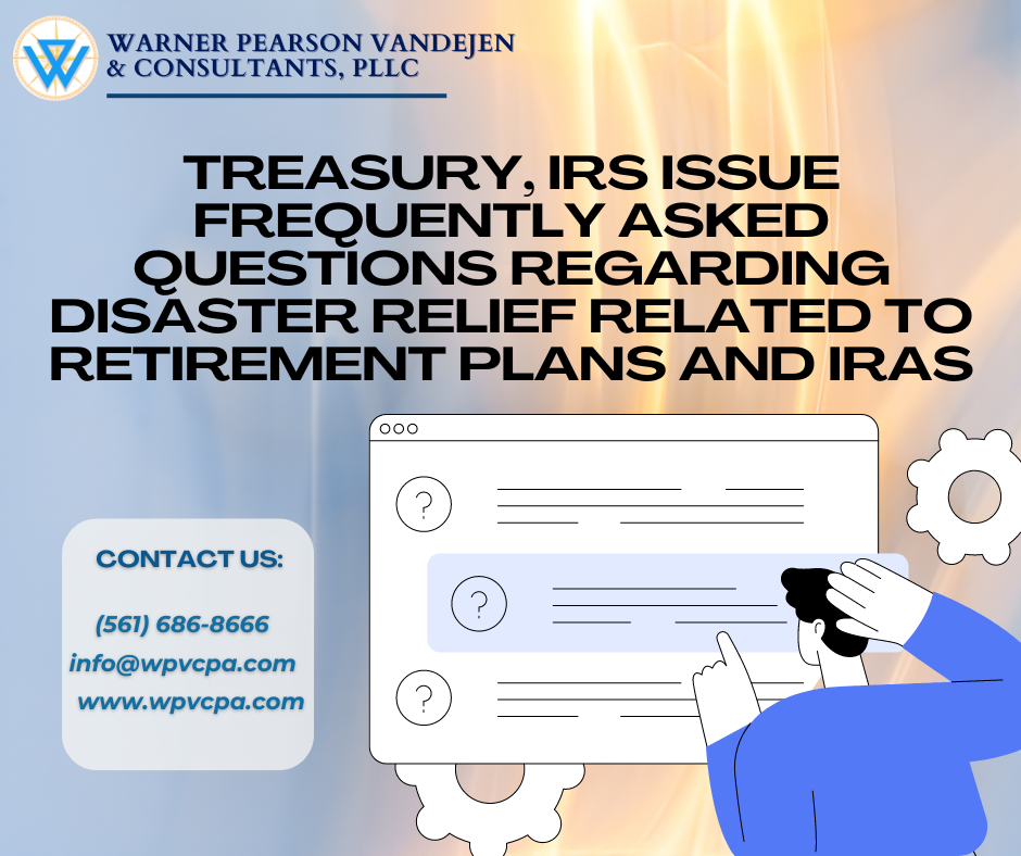 Treasury, IRS issue frequently asked questions regarding disaster relief related to retirement plans and IRAs