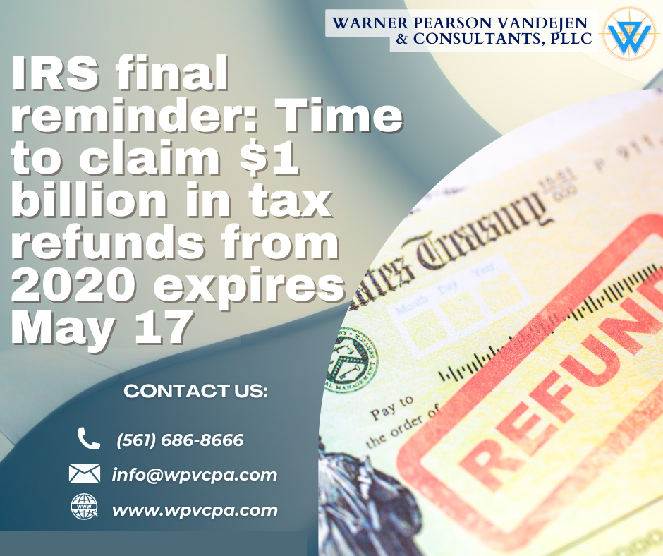 IRS final reminder: Time to claim $1 billion in tax refunds from 2020 expires May 17