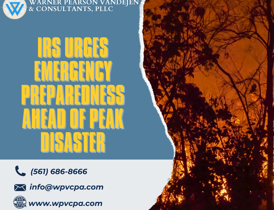 IRS urges emergency preparedness ahead of peak disaster