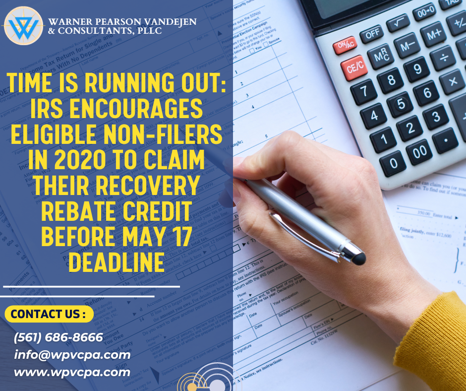 Time is running out: IRS encourages eligible non-filers in 2020 to claim their Recovery Rebate Credit before May 17 deadline