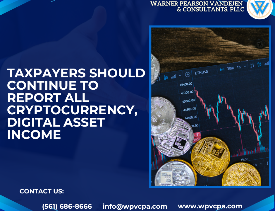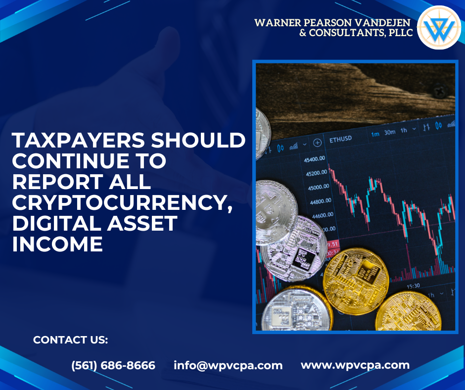 Taxpayers should continue to report all cryptocurrency, digital asset income