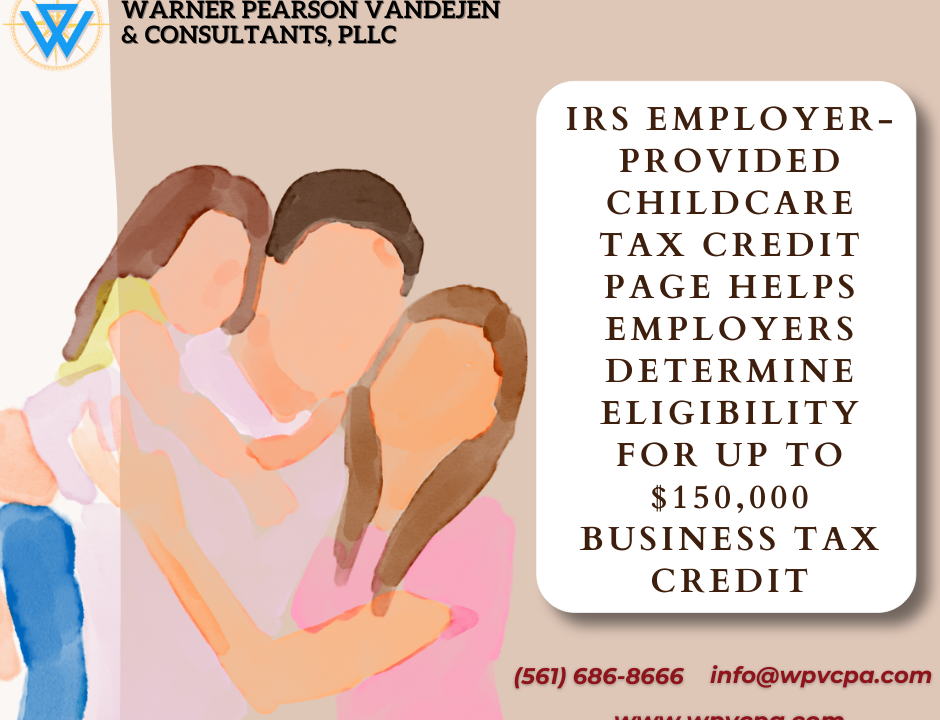 IRS Employer-Provided Childcare Tax Credit page helps employers determine eligibility for up to $150,000 business tax credit