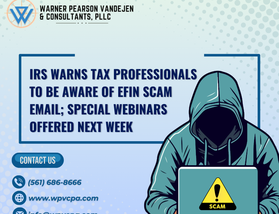IRS warns tax professionals to be aware of EFIN scam email; special webinars offered next week