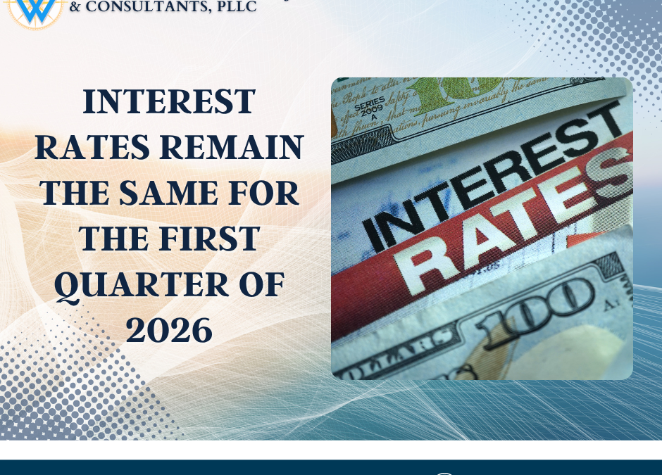 The Internal Revenue Service today announced that interest rates will remain the same for the calendar quarter beginning Jan. 1, 2026.